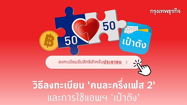 โครงการ คนละครึ่งจำนวน 1.34 ล้านสิทธิ์ จะเปิดลงทะเบียนเพิ่มเติมในวันพรุ่งนี้ (20 ม.ค.64)ตั้งแต่ 06.00 น. เป๋าตัง ใบใหม่ ใช้งานง่าย ครอบคลุมทุกธุรกรรมการเงิน ไม่ต้องพกกระเป๋าตังรูปแบบเดิม ๆ อีกต่อไป ใช้งานได้ทันทีเพียงมี รหัสผู้ใช้งาน krungthai next. ปัญหา แอปฯ เป๋าตัง เด้งออก แล้วไม่สามารถเข้าได้ ทำให้ไม่สามารถทำรายการอื่นต่อได้ เป็นอีกหนึ่งปัญหาที่มีประชาชนผู้ใช้สิทธิ โครงการ คนละ. โครงการคนละครึ่ง จากทางรัฐบาทไทย ได้มีมติเห็นชอบในที่ประชุม โดยจะมีการสนับสนุบเงินให้กับผู้ที่สนใจลงทะเบียน รับเงิน. ผู้ใช้สิทธิคนละครึ่งเฟส 1 จะได้รับสิทธิเพิ่ม 500 บาท และขยายเวลาใช้สิทธิได้ถึง 31 มี.ค.
